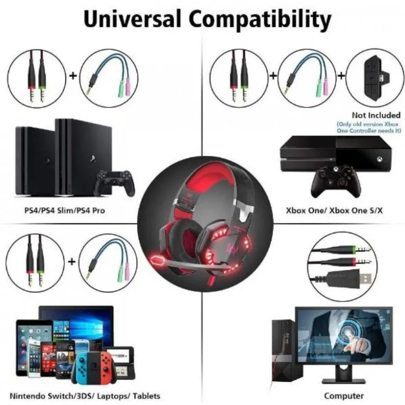 Compatibilidade total: ps4, ps4 pro/magro, xbox um, xbox um s/x controlador, pc, nintendo switch/3ds, psp, ps3, computador portátil, tablet, ipad, telefone móvel. Nota: ps3 e a versão antiga xbox um precisa adaptador de tomada extra (não incluído). Inclui um divisor jack 1 a 2 3,5mm extra para microfone e fones de ouvido.